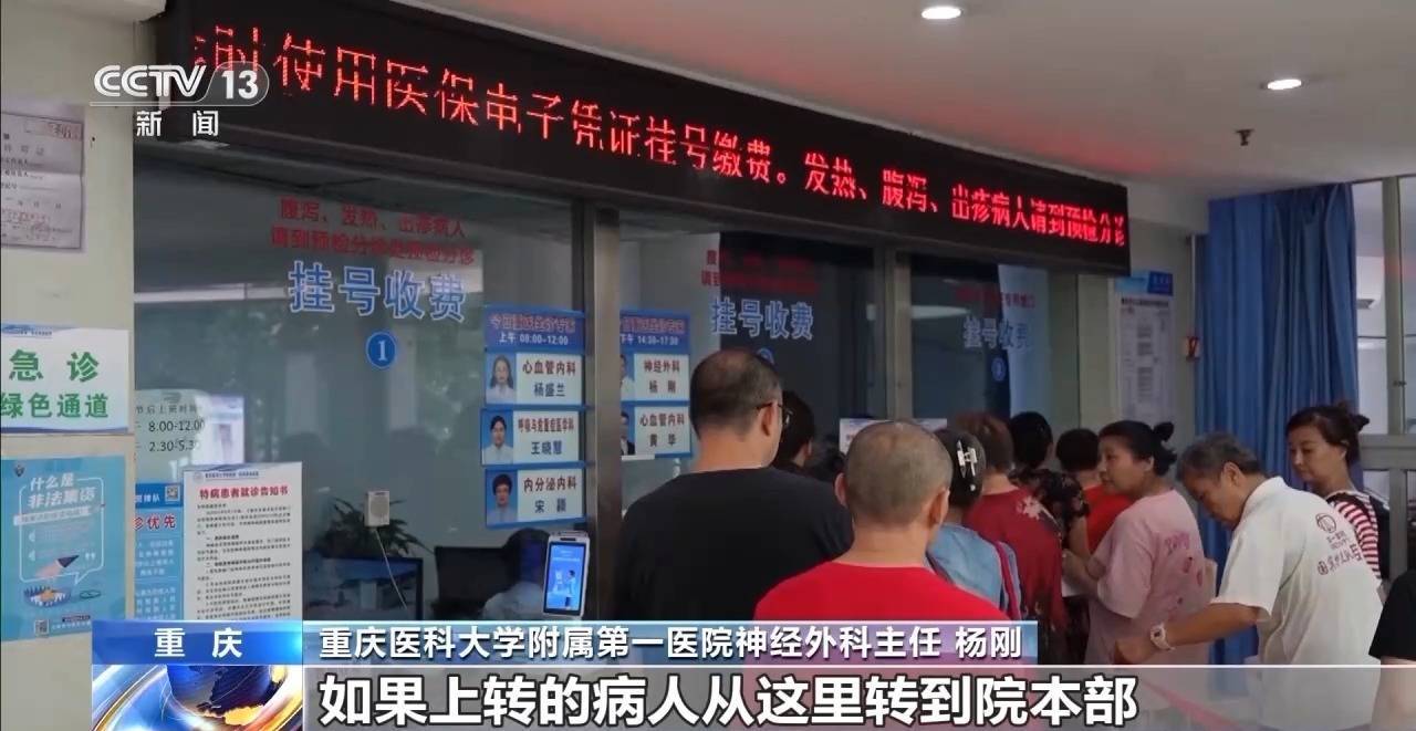 重庆医科大学附属第一医院神经外科主任 杨刚:比如说我们双向转诊,从我们院本部转到建设医院,那么我们就把(医保报销)门槛费全免。如果上转的病人从这里转到院本部,那么我们也实行了门槛费的减半,那么就使我们的病人就切身地获得了实惠。