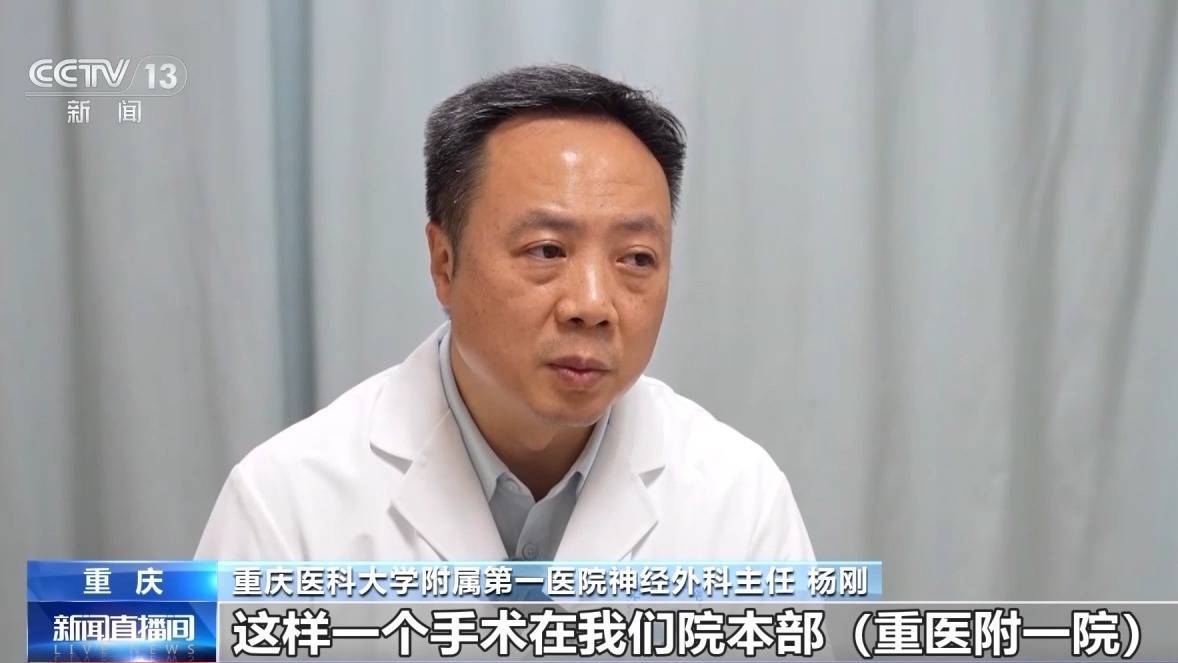 重庆医科大学附属第一医院神经外科主任 杨刚:手术难度不那么大的,在我们院本部(重医附一院)其实排队也会排很长,让这种病人到这里来,由我们的专家给他做诊断,然后由我们的专业教授亲自来做手术。手术以后,也是我们的团队密切地来指导这种病人术后的康复。